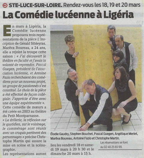 Pièce de Gérard Sibleyras, jouée en mars 2016 au théâtre Ligéria sur trois représentations.